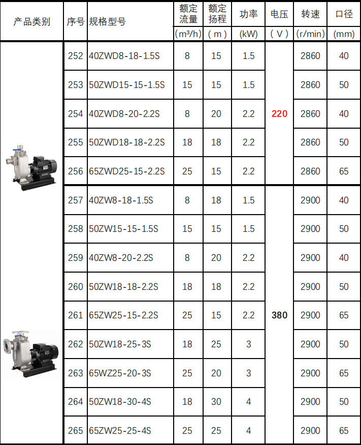 ZW-S不銹鋼單相自吸排污泵性能參數(shù):