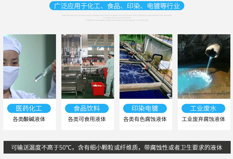 2、適合各種酸堿液循環(huán)、冷卻、噴洗設(shè)備,廢氣塔、蝕刻機(jī)、化學(xué)鍍、無(wú)電解鎳等特殊場(chǎng)合