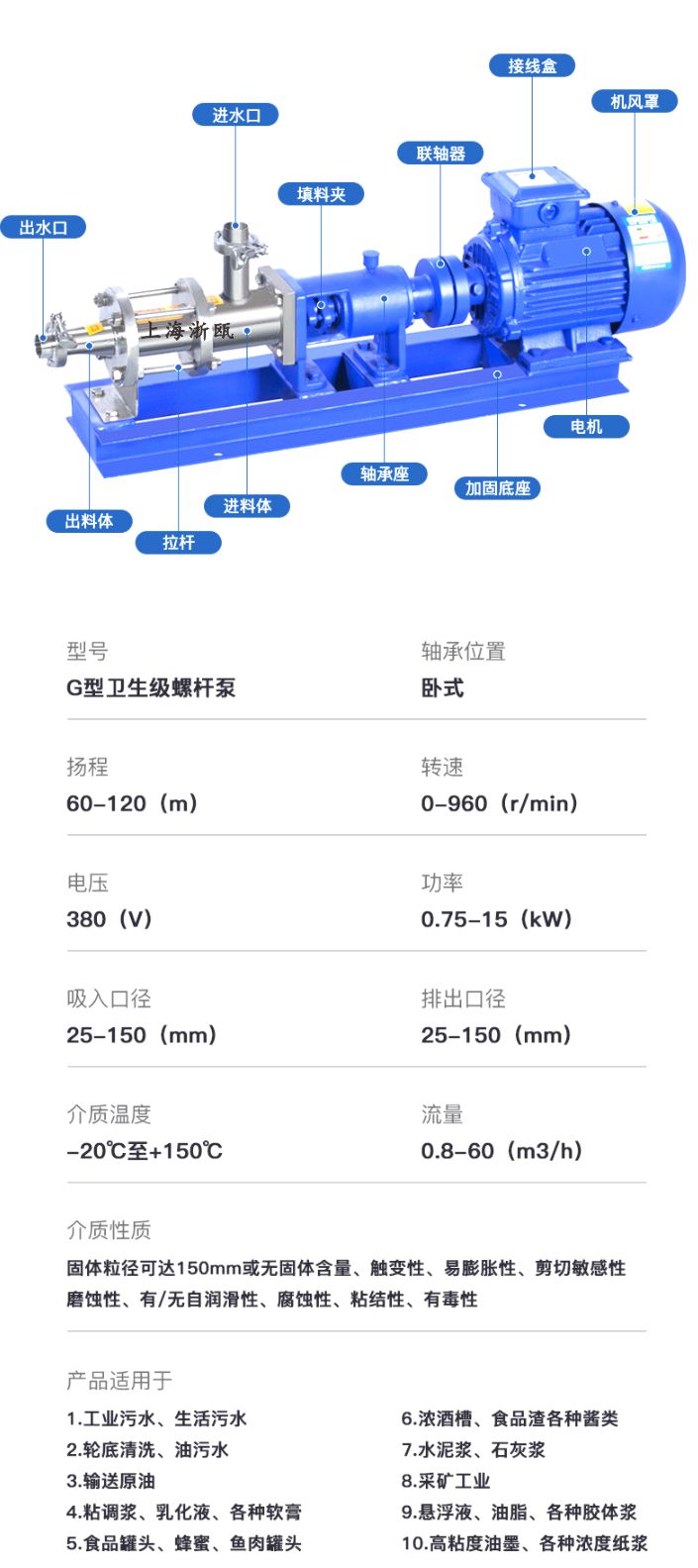 GF型衛(wèi)生級(jí)單螺桿主要致力于輸送有粘度且流動(dòng)性差的介質(zhì),如:
